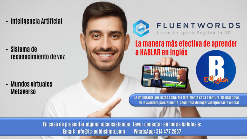FluentWorlds es una nueva tecnología para dispositivos móviles que permite acelerar el aprendizaje del Inglés en mundos virtuales metaverso,